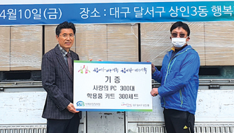 달서구 상인3동행정복지센터는 10일 사회보장정보원 경영관리본부(본부장 이상희)로부터 중고컴퓨터 300대와 학용품 300세트를 기증받아 코로나19로 인해 집에서 온라인 수업을 들어야 하는 저소득 주민자녀에게 전달했다.