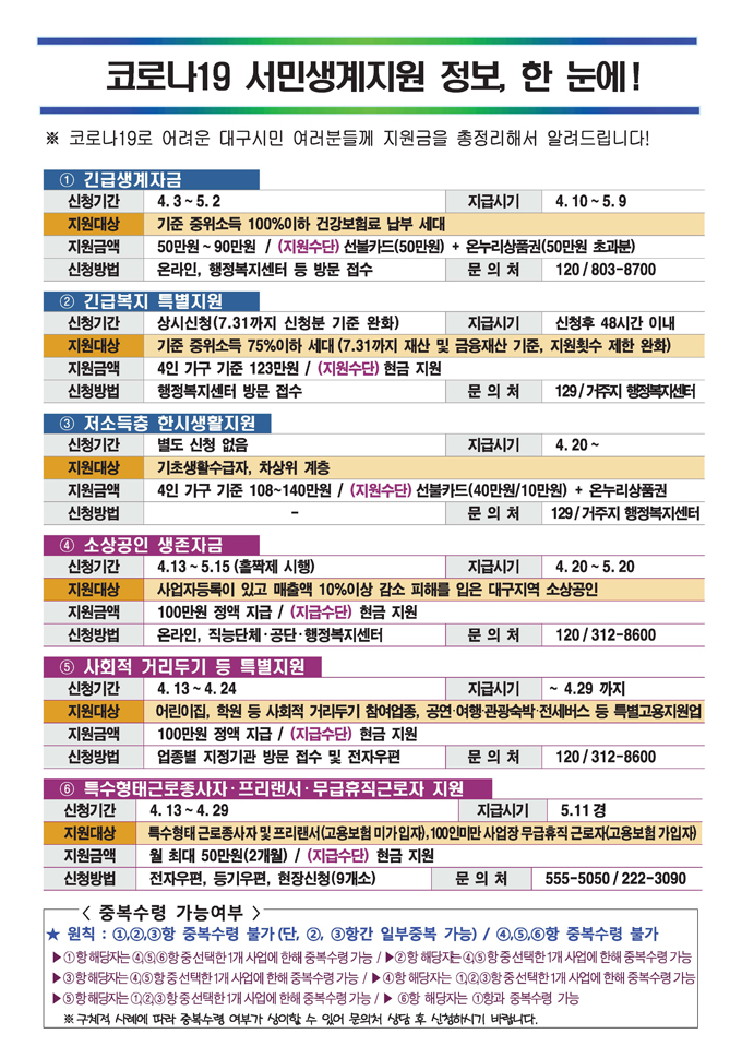코로나19 서민생계지원 정보, 한 눈에!
